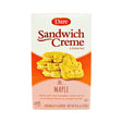 Treat yourself to Dare Maple Leaf Creme Cookies. These classic cookies feature a sweet maple-flavored creme filling sandwiched between crisp, buttery cookies, perfect for a delightful snack anytime.