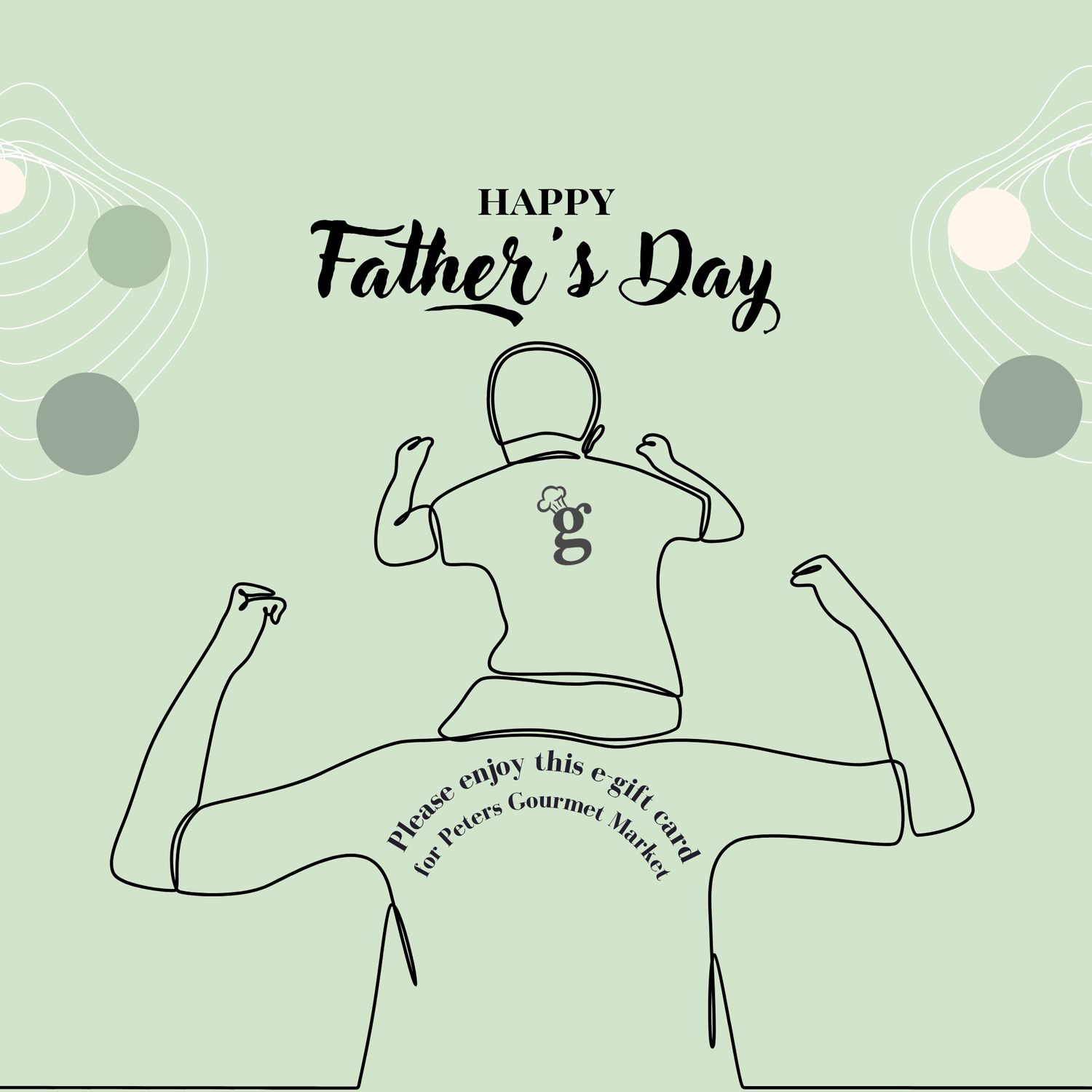 Celebrate Dad with the perfect gift—our Father's Day E-Gift Card! Give him the freedom to choose exactly what he loves from Peters Gourmet Market. Easy to send and sure to brighten his special day, it’s a thoughtful way to show your appreciation and make his day extra memorable.