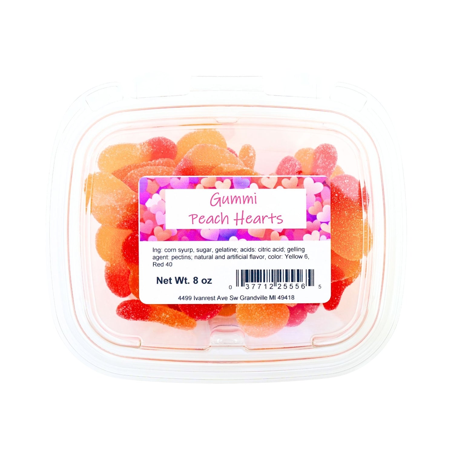 Vidal Gummi Peach Hearts 8 oz tub is backordered and will ship as soon as it is back in stock.