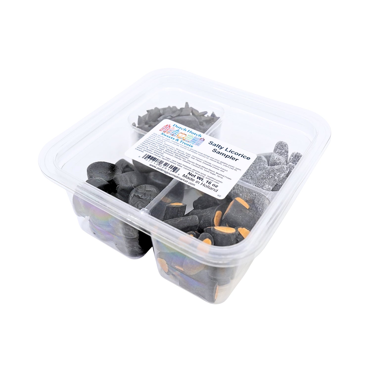 Discover the Dutch Hutch SALTY Licorice Sampler V2, a 16oz collection featuring four distinct kinds of salty licorice. Perfect for those who love bold, savory flavors, this sampler offers a delicious way to explore a variety of textures and tastes in one delightful package. Enjoy sharing this unique treat or keep it as your secret stash of licorice goodness!
